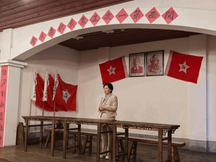 学院党总支书记郑雷向同学们介绍,闽西苏维埃政府于1930年成立,这一历史事件标志着闽西在形态和实质上形成了一块统一而巩固的苏维埃区域,体现了坚定的革命信念、勇于探索的民主精神以及为民众利益奋斗的奉献精神。在现场,同学们仿佛穿越时空,置身于闽西第一次工农兵代表大会现场,感受革命先辈们为建立苏维埃政权、谋求人民幸福而奋斗的坚定决心。