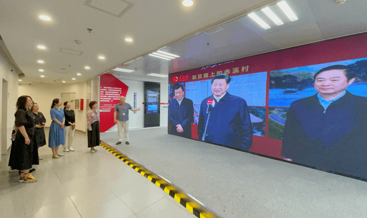 人民日报是党中央机关报,人民网是“网上的人民日报”。人民体育作为人民日报社人民网重点打造的体育平台,是人民日报社“扩大三个覆盖面”的重要抓手,人民网在垂直领域的重要板块。人民体育打造集赛事运营、品牌营销、多层次体育IP管理等为一体的体育全产业服务平台,是中国体育融合发展的重要推动者。人民网人民体育事业部总监彭元元热情接待到访团队,陪同团队参观了人民网展览区、演播厅等区域,详细介绍了人民网的历史赓续、作为人民日报社融媒体建设旗舰单位的建设成果、以及在“发挥在舆论上的导向作用、旗帜作用、引领作用”上的实践经验等情况介绍。