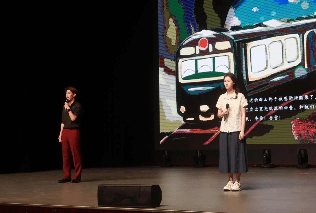 在《推普展示》部分,同学们通过情景再现与声音演绎,讲述播音专业连续三年深入新疆推广普通话的传承故事,以专业之声搭建文化桥梁。《配音展示》则融合中秋祝福与女性致敬,八位学生用声音诠释节日温情与历史回响。