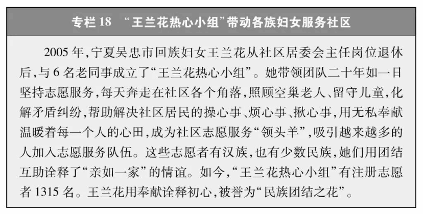 踊跃参加志愿服务等社会公益事业。重视引导支持志愿服务、社会组织等健康发展,广大妇女积极参与。2024年全国有2400万名注册巾帼志愿者和35万支巾帼志愿服务队,开展巾帼志愿服务活动近百万次,服务领域覆盖联合国2030年可持续发展议程17个目标领域,在支持国家战略、保障改善民生、加强社会治理等方面发挥重要作用。妇女参与社会组织人数增加,2023年社会组织从业人员、负责人中的妇女比例分别为42.3%、26.3%,比2012年分别提高13.3个、4.9个百分点。