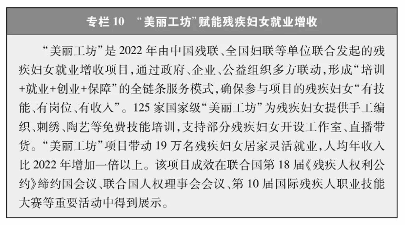 发展生产助力妇女就业增收。坚持开发式扶贫方针,赋能贫困妇女发展。加强产业扶持,推进食品加工、服装制造等劳动密集型产业梯度转移,产业帮扶政策覆盖98.9%的贫困户,通过东西部劳务协作、建立扶贫车间、开发乡村公益性岗位等,为有劳动能力和意愿的贫困妇女提供工作机会;鼓励支持电商扶贫、光伏扶贫、旅游扶贫等新业态新产业发展,帮助贫困妇女实现家门口就业;发展民族地区手工编织产业,让“苗绣”“彝绣”等订单式手工编织从“指尖技艺”转化为“指尖经济”。加强财政和金融支持,脱贫攻坚期间,出台专门政策提供免抵押免担保的贴息贷款、税费减免等支持,累计为妇女发放小额担保贷款和扶贫小额信贷4500多亿元,870万名妇女实现创业增收;2021-2024年,192.8万名妇女持续获得脱贫人口小额信贷768.3亿元。加强能力培训,开展多渠道、多层次、多形式的职业技能培训、创业培训和农业实用技术培训,截至2020年,累计对1021万名贫困妇女和妇女骨干进行各类技能培训;2023-2024年,“雨露计划”共资助63.2万名妇女接受职业教育,妇女发展内生动力持续激发。