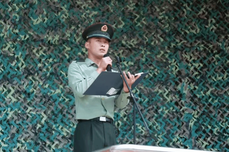 承训教官代表王修海代表全体教官为同学们送上三点祝福:愿纪律成为生命自觉;愿突破成为精神勋章;愿团结化作永恒财富;希望同学们以饱满状态投入到军训中,在淬炼中展示最好的自己!