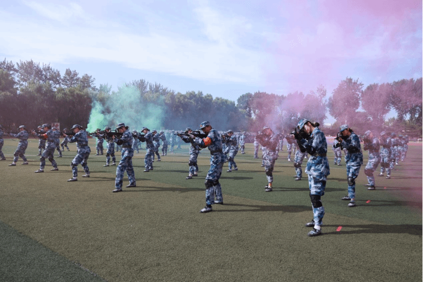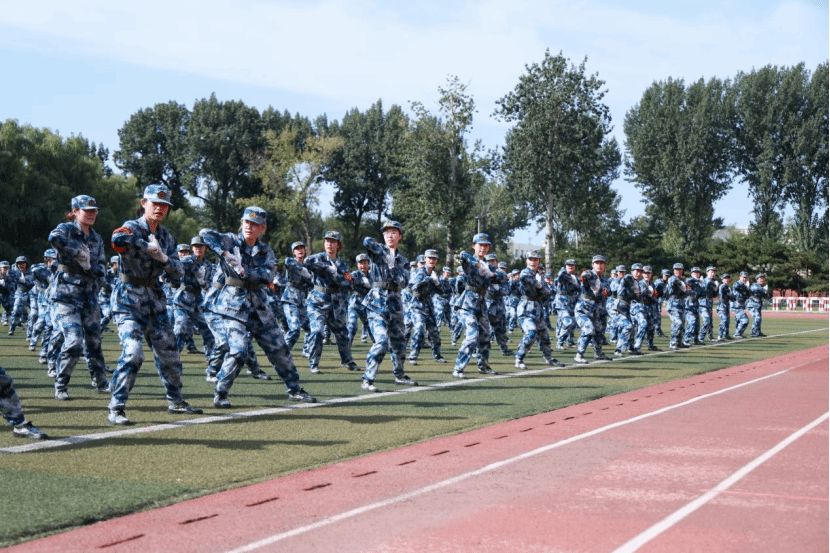 军训训练成果展示精彩纷呈。分列式上,同学们士气高昂、步伐铿锵,赢得阵阵掌声。特色科目展示中,坦克旗语、匕首操、刺杀操、军体拳、格斗术、战术演练,同学们身手敏捷、飒爽英姿。