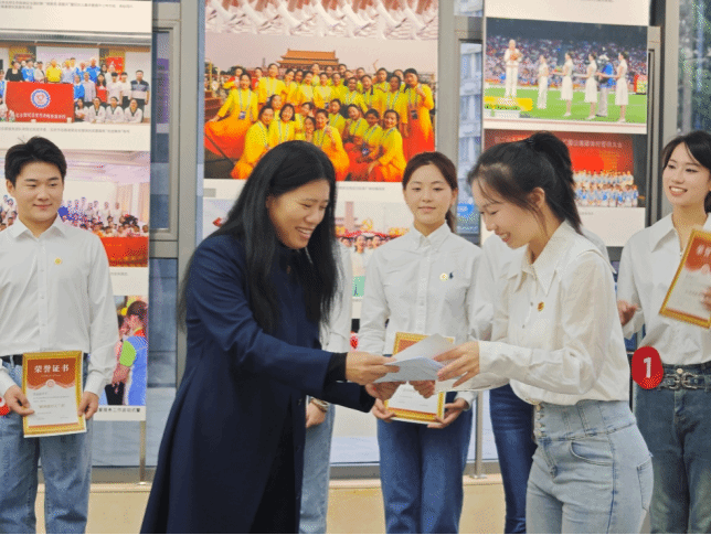 赵晓丹老师为志愿讲解员王佳敏颁奖