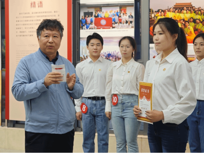 霍烺白老师为志愿讲解员杨海涛颁奖
