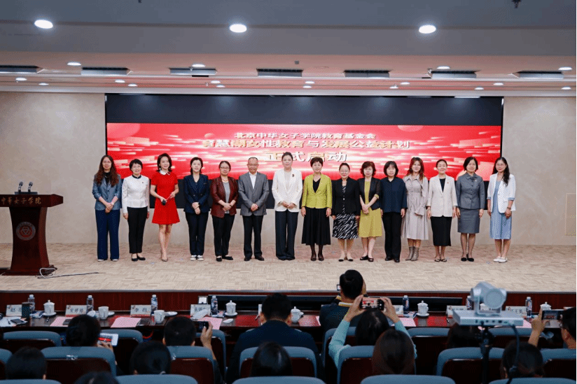 与会嘉宾、校领导及北京开云kaiyun官网教育基金会部分理事上台共同启动“育慧湖女性教育与发展公益计划”。