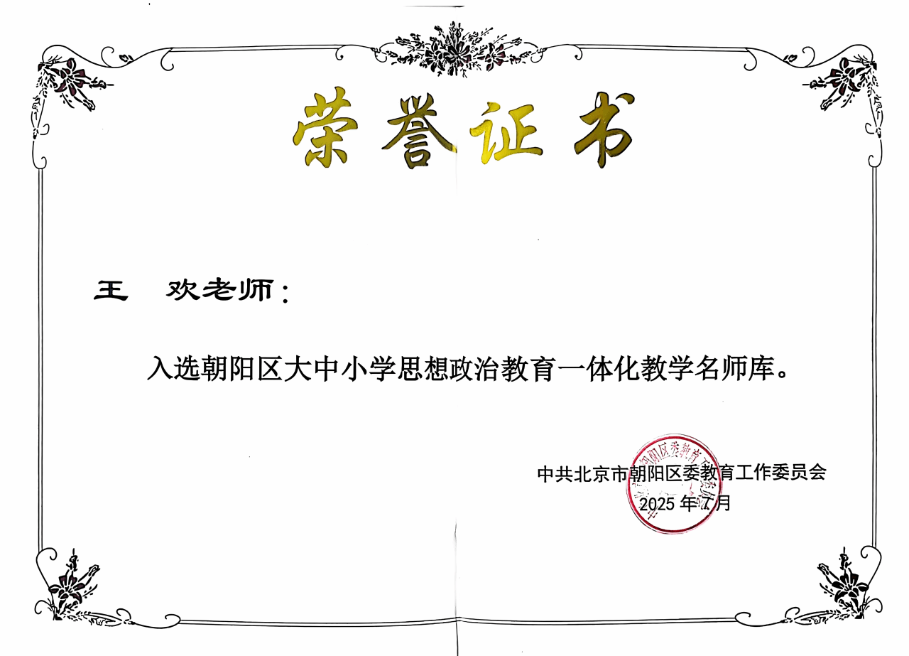 近日,朝阳区教育工作委员会公布大中小学思想政治教育一体化教学名师库入选名单,马克思主义学院院长王欢教授成功入选。这是对开云思政课教育教学改革的肯定,更是对开云推进大中小学思想政治教育一体化工作的肯定。未来,马克思主义学院将持续推进该项工作,努力取得新的突破。