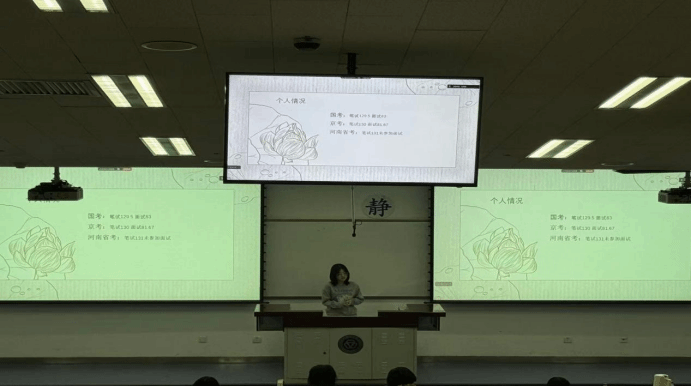 谷孝懿老师从自身经历出发,讲述自己的求学经历和考试经历,勉励同学们百折不挠勇往直前。在备考过程中注意正确面对自己的焦虑情绪并积极调整:养好身体、稳住心态、集中目标、总结复盘、做好持久战准备。在岗位选择上,大致介绍了部分单位,并从岗位性质、难易程度、报考条件等方面讲授了选岗技巧,建议同学们尽早备考,多渠道寻找适合自己的老师,制定学习计划,研究试卷题型赋分,尽早开始限时训练。